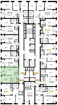 Однокомнатная квартира №56 с предчистовой отделкой, Корпус 1, Секция 1