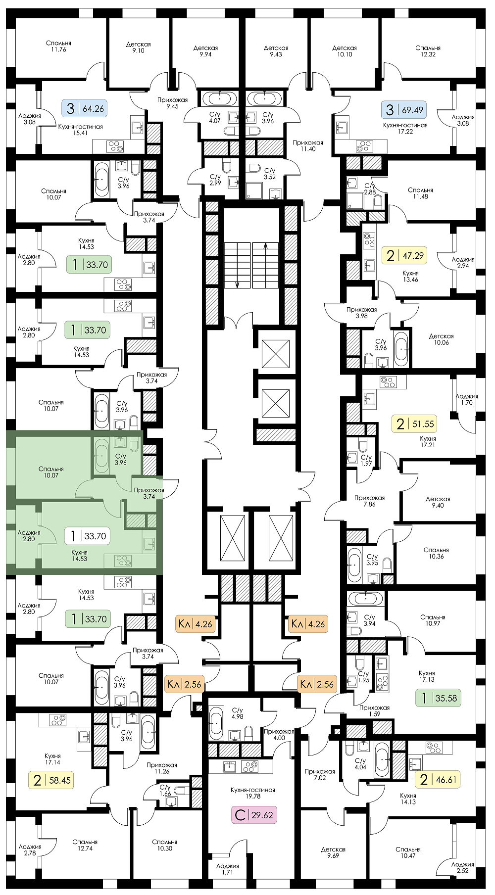 Однокомнатная квартира №201 с чистовой отделкой, Корпус 1, Секция 1